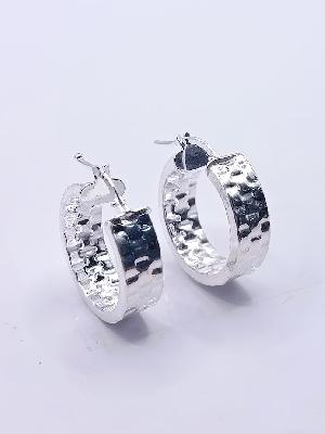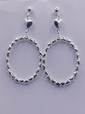 ORN10469 Aro de Plata Lisa Colgante Corazones