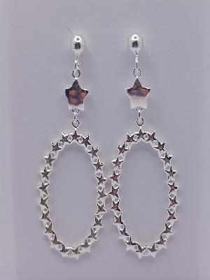 ORN10467 Aro de Plata Lisa Colgante Estrellas