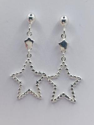 ORN10466 Aro de Plata Lisa Colgante Estrellas