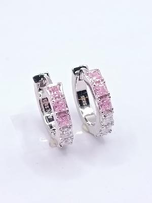 E-2300 Ro Aro de Plata Rodio Argolla Zircon Rosado Princes 03x1cm