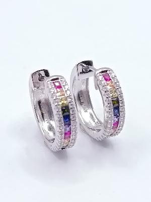 E-2402 Aro de Plata Rodio Argolla Zircon Colores 04x1,2cm