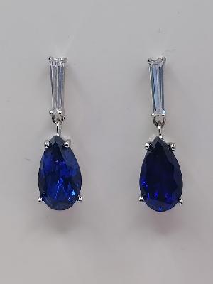 E-1138 Z Aro de Plata Rodio Trapecio Gota 06x08cm Zafiro