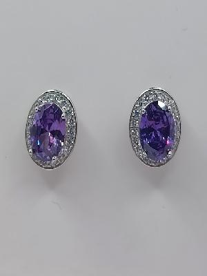 E-1415 AM Aro de Plata Rodio Amatista Oval 06x08cm