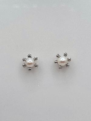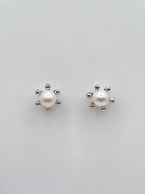 SE69524A4 Aro de Plata Rodio Perla Pistilo 4mm