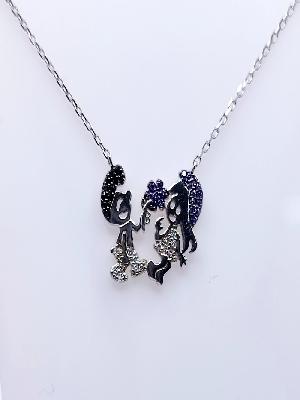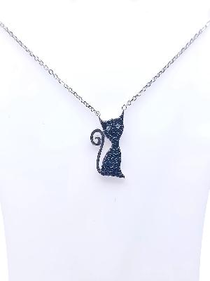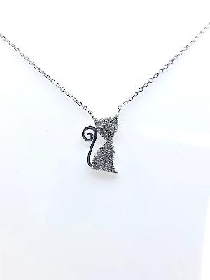 14617FNS1 Collar de Plata Rodio Gato Negro