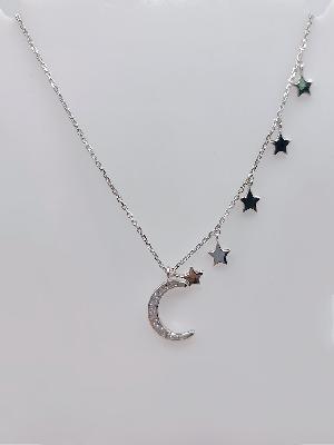 18078FNS1 Collar de Plata Rodio Estrellas Luna