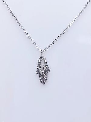 4704FNS1 Collar de Plata Rodio Mano Fatima