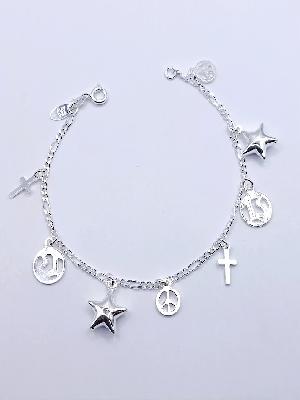 BR1420 Pulsera de Plata Estrella Cruz Paz