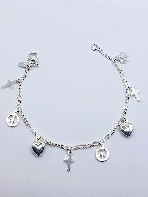 BR1418 Pulsera de Plata Corazon Cruz Paz