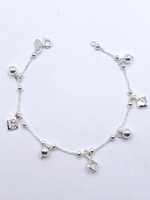 BR9515 Pulsera de Plata Bolas y Cristales