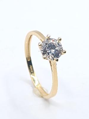 MS0104 Anillo de Oro Amarillo Zircon Solitario 6mm