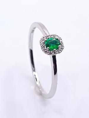 R10053(E) Anillo de Oro Blanco Brillantes Esmeralda