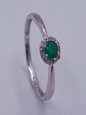 KR05-85815-**3 Anillo de Oro Blanco Brillantes 4,4 Ptos Esmeralda