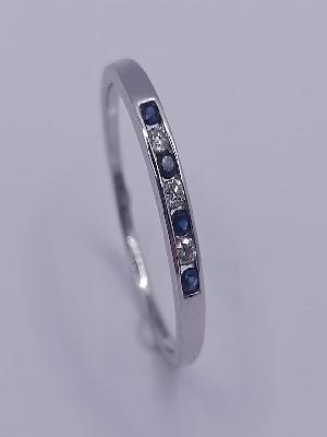 KR05-79846-*16 Anillo de Oro Blanco 3 Brillantes 4 Zafiro Cintillo 14 Ptos