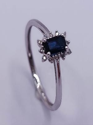 KR05-114678-**1 Anillo de Oro Blanco 12 Brillantes Zafiro 30 Ptos