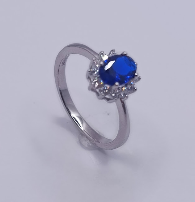 R-0560 Z ANILLO PLATA RODINADO ZIRCON ZAFIRO