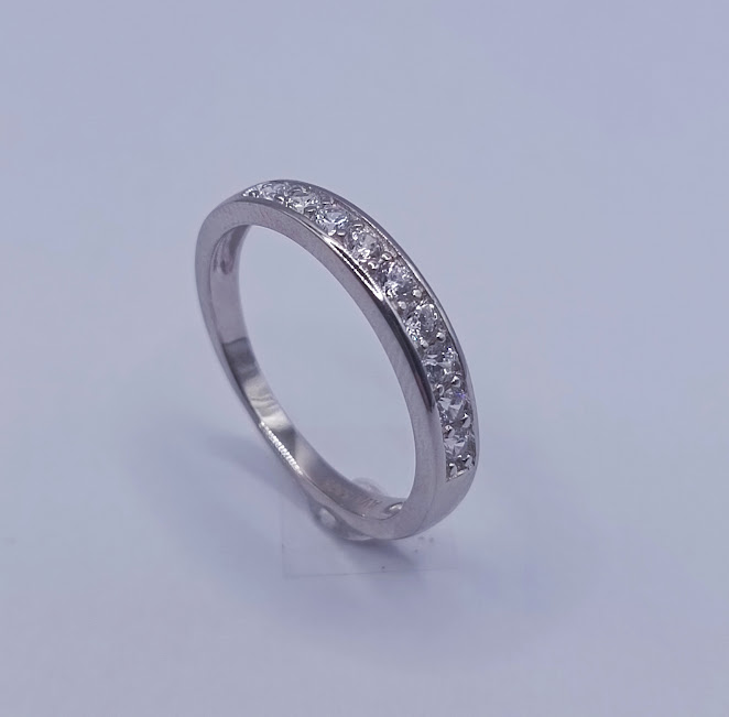 R-1009 ANILLO PLATA RODINADO ZIRCON CHANEL Y GARRA