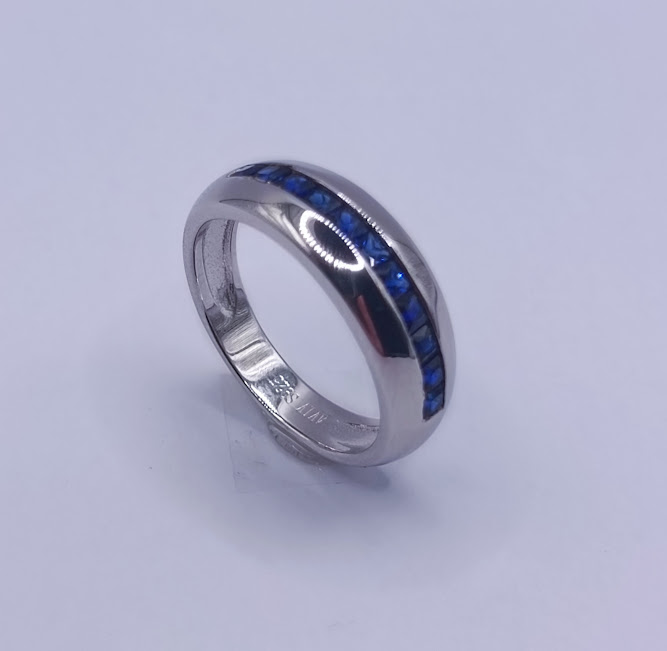 R-1311 Z ANILLO PLATA RODINADO ZIRCON ZAFIRO CUADRADO