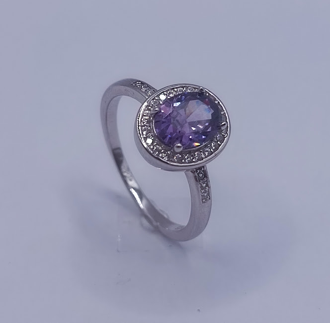 R-1324 AM ANILLO PLATA RODINADO ZIRCON AMATISTA