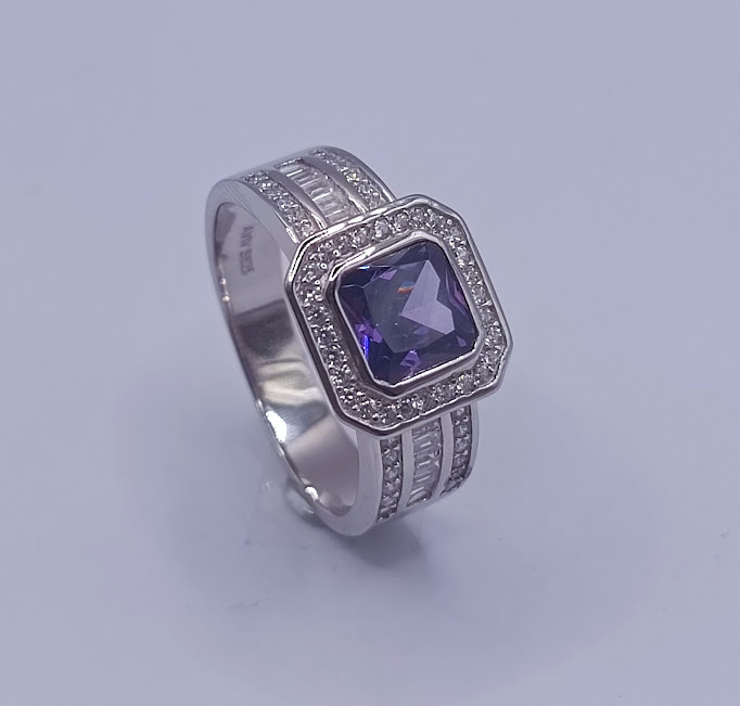 R-1331 AM ANILLO PLATA RODINADO ZIRCON AMATISTA