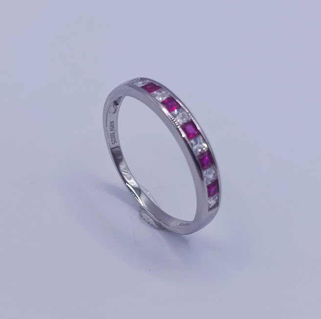 R-1459 R ANILLO PLATA RODINADO ZIRCON RUBI PRINCES