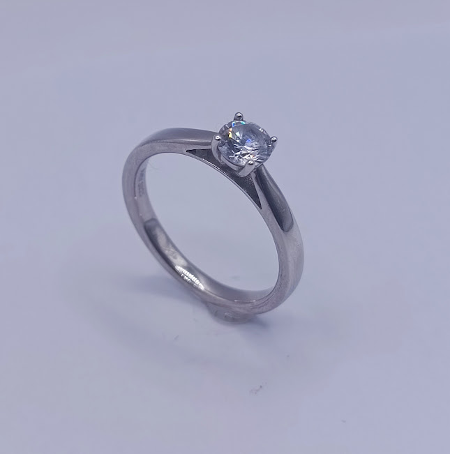 R-1701 ANILLO PLATA RODINADO ZIRCON SOLITARIO ERGONOMICO