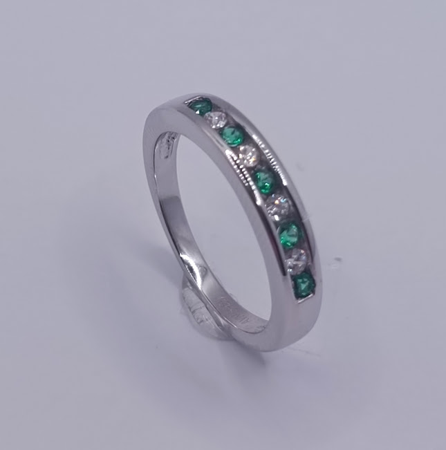 R-0548 E ANILLO PLATA RODINADO ZIRCON ESMERALDA 2m