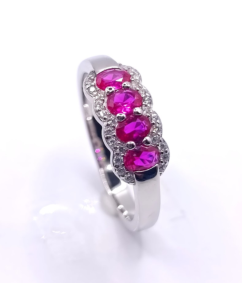 R-30925 ANILLO PLATA RODINADO ZIRCON RUBI
