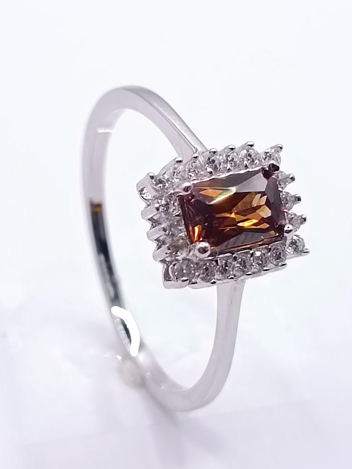 R-24697 BR ANILLO PLATA RODINADO ZIRCON BROWN