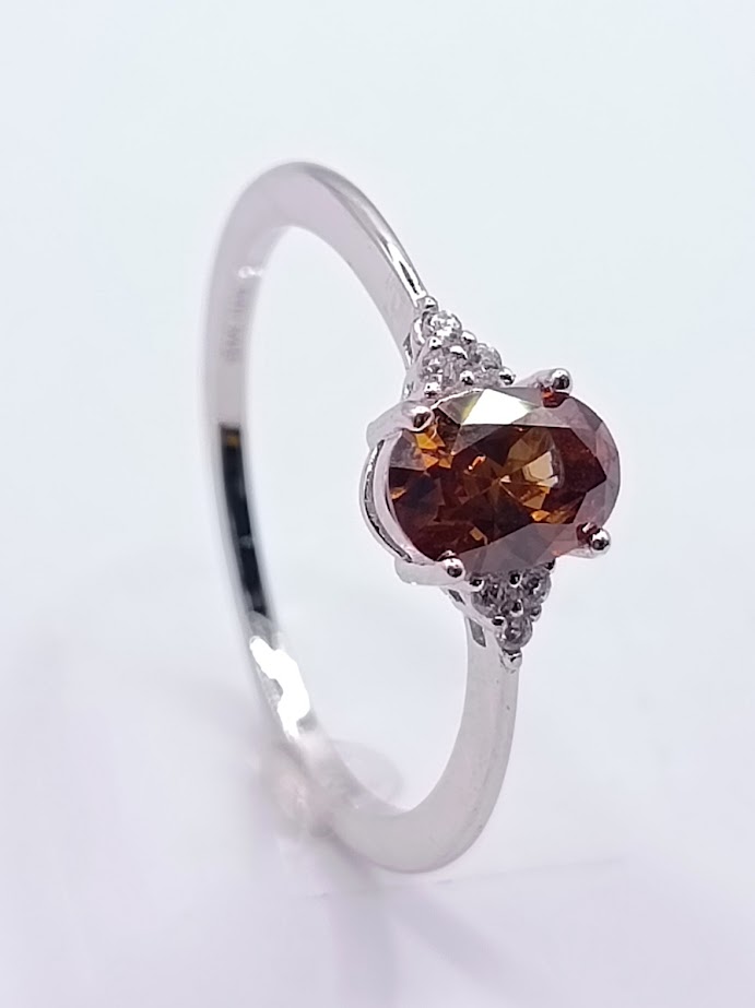 R-24699 BR ANILLO PLATA RODINADO ZIRCON BROWN