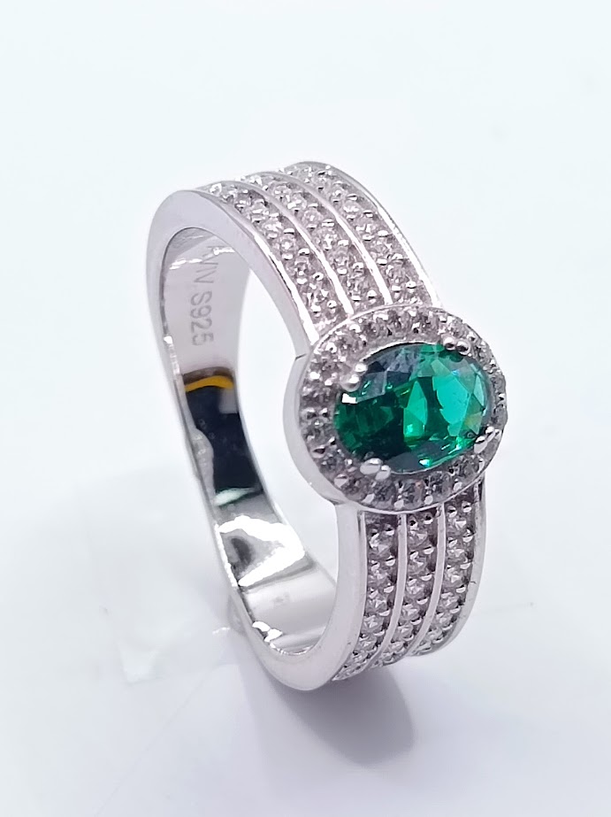 TR-711 E ANILLO PLATA RODIO ZIRCON ZIRCON ESMERALDA
