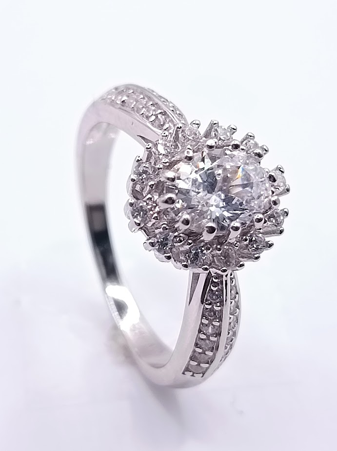 TR-928 B ANILLO PLATA RODIO ZIRCON BLANCO
