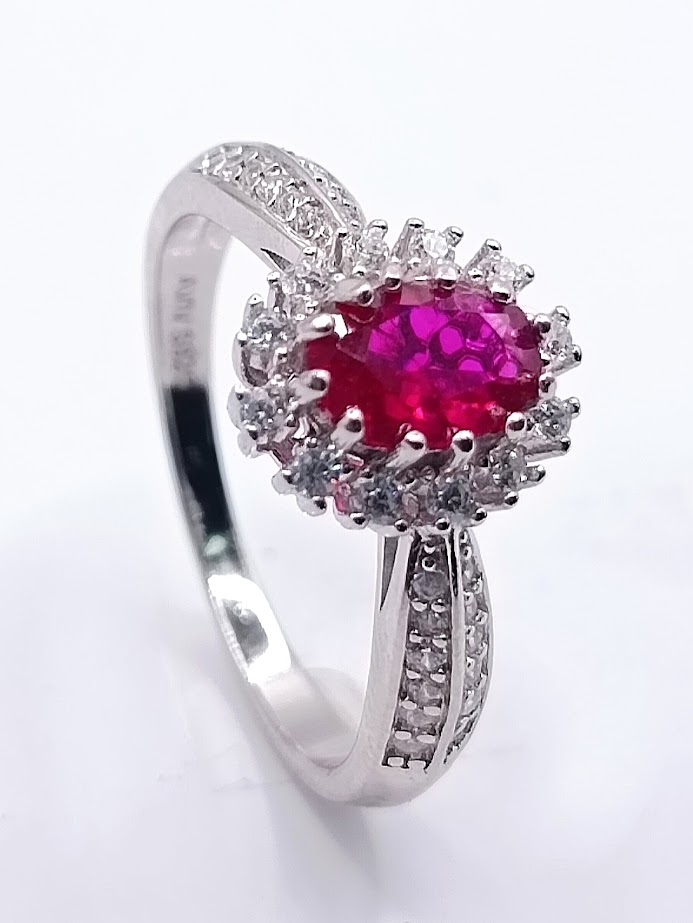 TR-928 R ANILLO PLATA RODIO ZIRCON RUBI