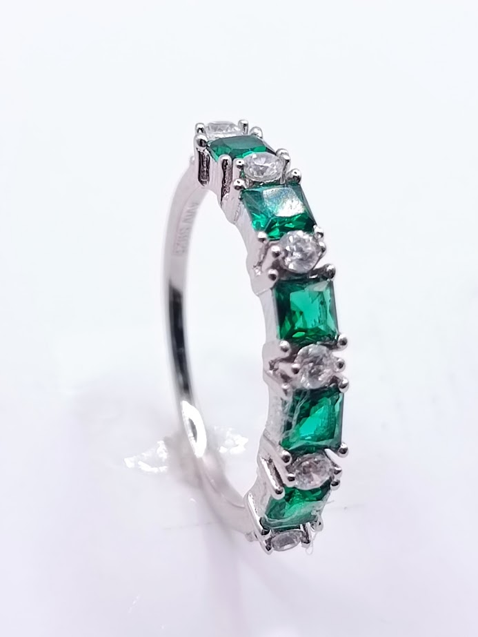 R-5894 E ANILLO PLATA RODINADO ZIRCON ESMERALDA