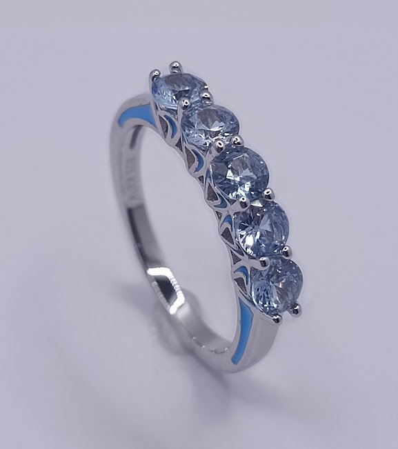 SL90407J1 ANILLO PLATA RODINADO ZIRCON AGUAMARINA ESMALTE