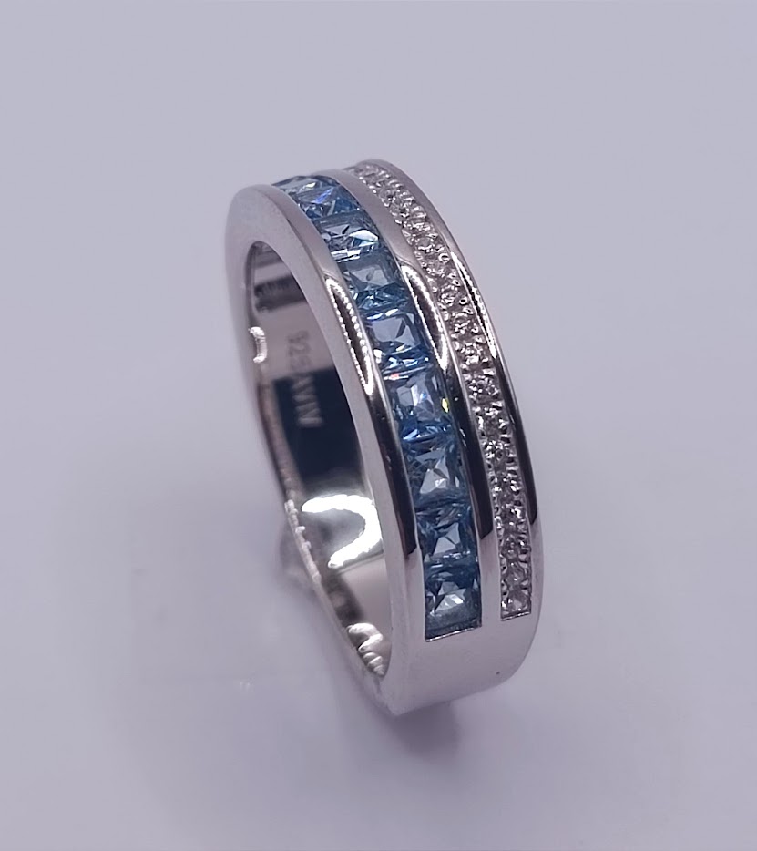 SL32683B1 Anillo Plata Cintillo Aguamarina