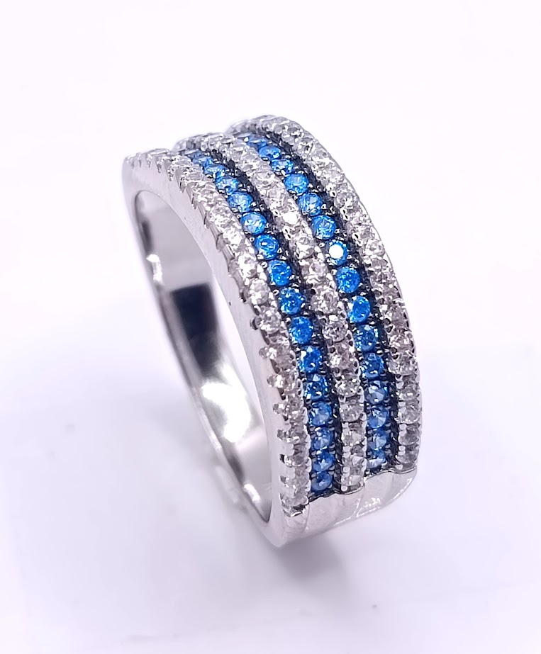 SL30526DH1 ANILLO PLATA RODINADO ZIRCON AGUA