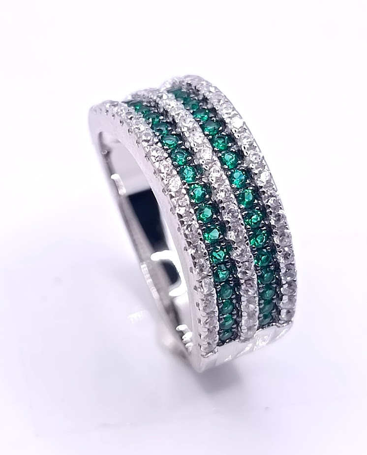 SL30526LH1 ANILLO PLATA RODINADO ZIRCON ESMERALDA