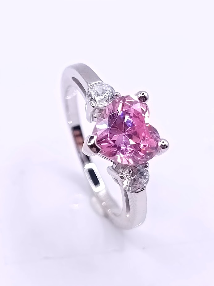 SL90807F1 ANILLO PLATA RODINADO ZIRCON CORAZON ROSA