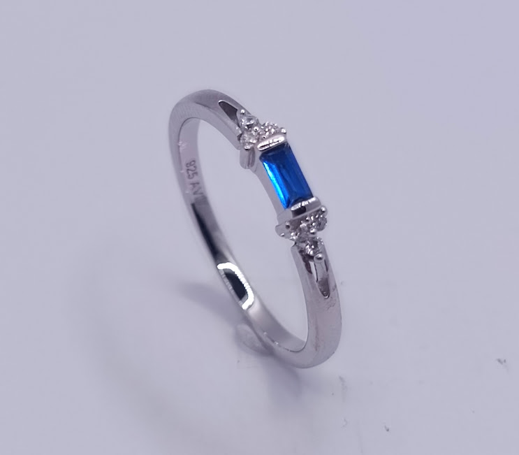 12192FRSWSH1 ANILLO PLATA RODIO ZIRCON ZAFIRO