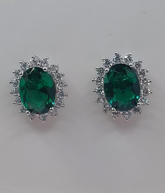 E-1514 E ARO PLATA RODIO ZIRCON ESMERALDA