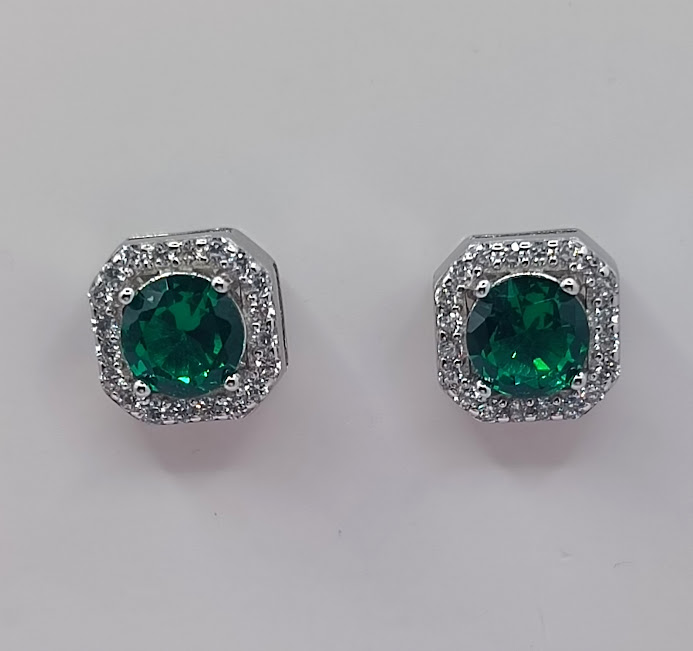 E-0379 E ARO PLATA RODINADO ZIRCON ESMERALDA