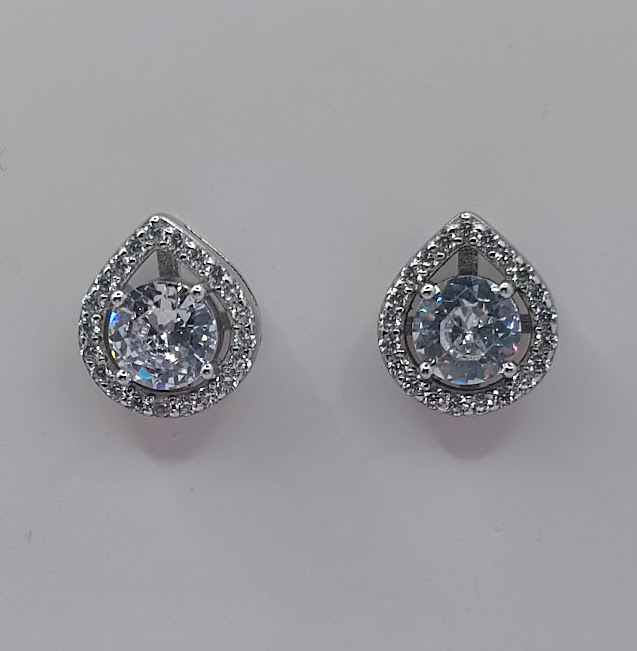 E-0380 ARO PLATA RODINADO ZIRCON BLANCO