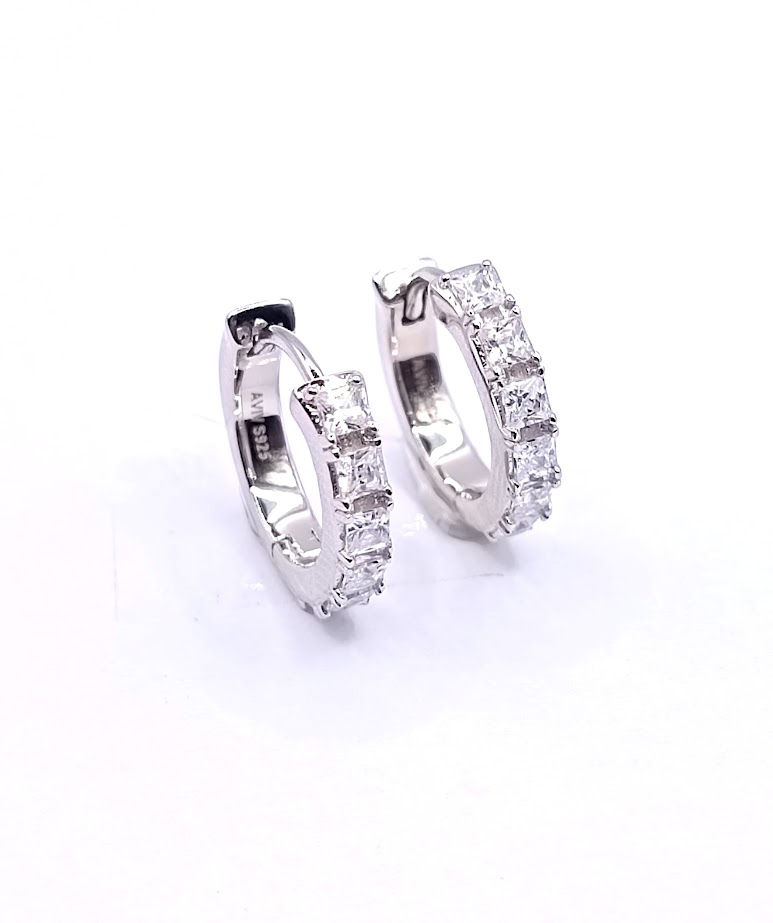 E-2300 ARO PLATA RODIO ZIRCON BLANCO & BLANCO CIERRE HOGGIE