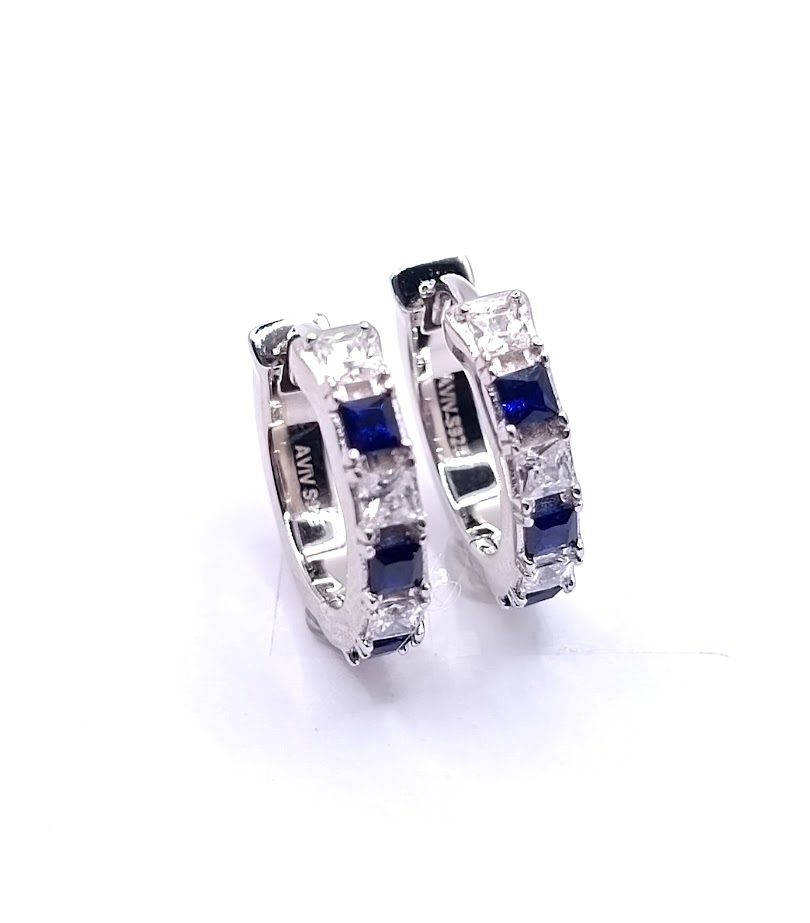 E-2300 ARO PLATA RODIO ZIRCON ZAFIRO & BLANCO CIERRE HOGGIE
