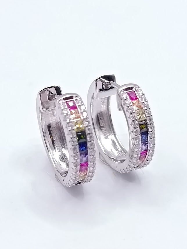 E-2402 ARO PLATA RODIO ZIRCON COLORES