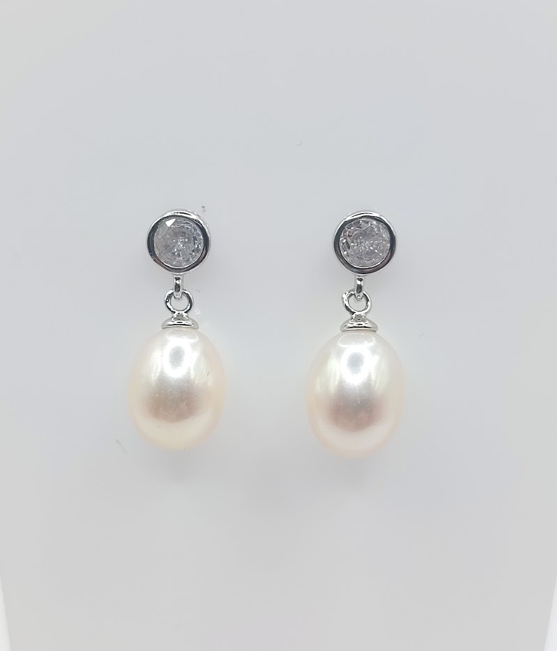 YA-E139 ARO PLATA RODIO PERLA DE RIO