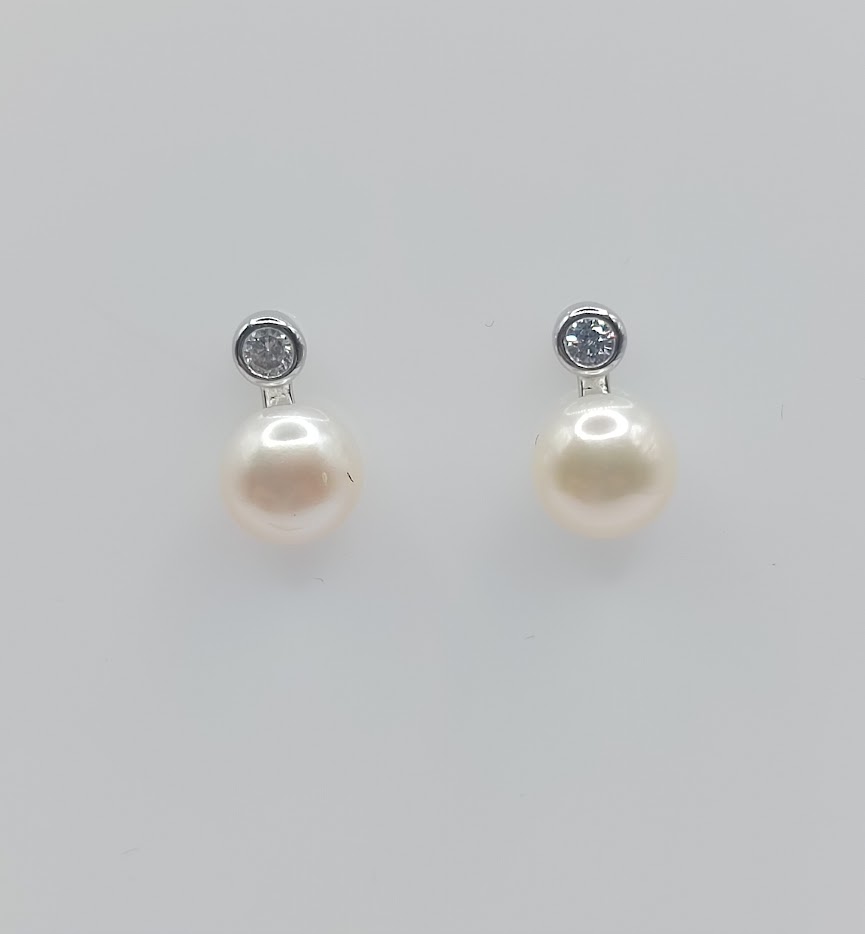 YA-E059 ARO PLATA RODIO PERLA DE RIO