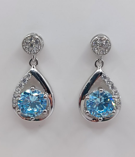E-0031 ARO PLATA RODIO ZIRCON AGUAMARINA