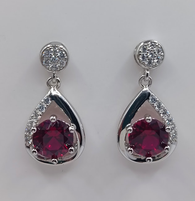 E-0031 ARO PLATA RODIO ZIRCON RUBI